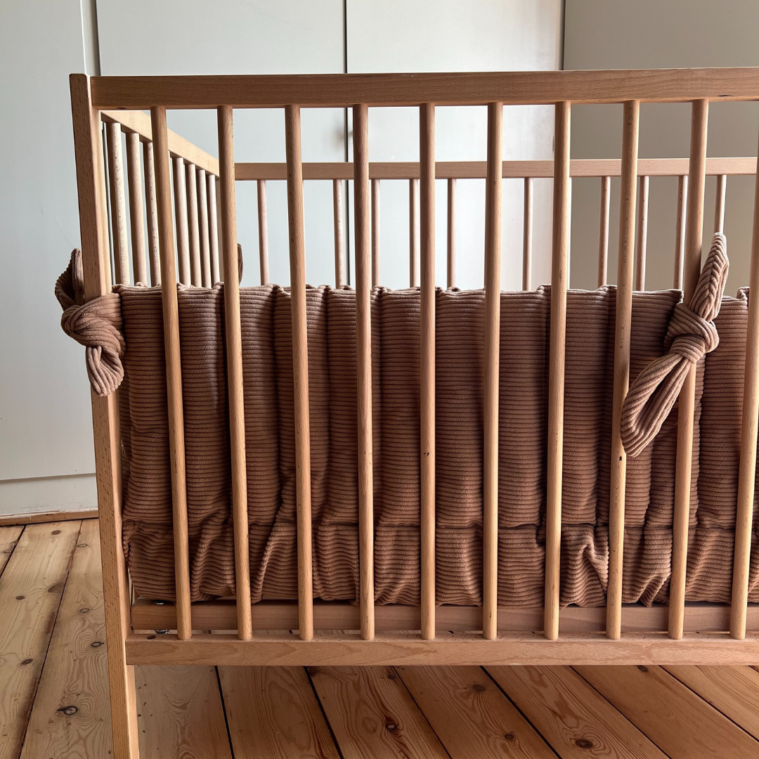 Sengeranden i fløjl er en opgradering af det allerede meget populære produkt, og med fløjlsudgaven skaber du den ultimative bløde og luksuriøse ramme for din babys søvn.