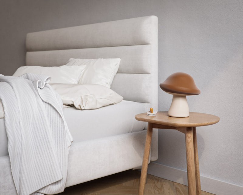 Vi har længe haft en vision om en ammevenlig natlampe og i løbet af sommeren dykker Sara ned i alt, hvad der er at vide om lys, lamper og plaststøbning i samarbejde med en lokal virksomhed. Ud af dette vokser idéen om Svampelampen; en lampe, som ved et enkelt puf lyser rødt, og dermed forstyrrer søvnhormonerne mindst muligt, når der er behov for lys om natten. Svampelampen får enorm interesse fra kunderne.