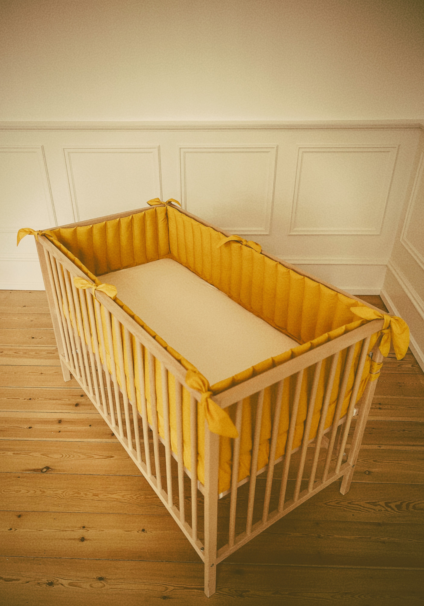 Vores sengerand er ikke bare en smuk tilføjelse til din babys seng; den er også en essentiel del af en tryg og sikker soveplads. Fyldt med kapok sikrer denne sengerand en blød og allergivenlig barriere, der beskytter din lille fra at slå sig på tremmerne eller få arme og ben fanget imellem dem.